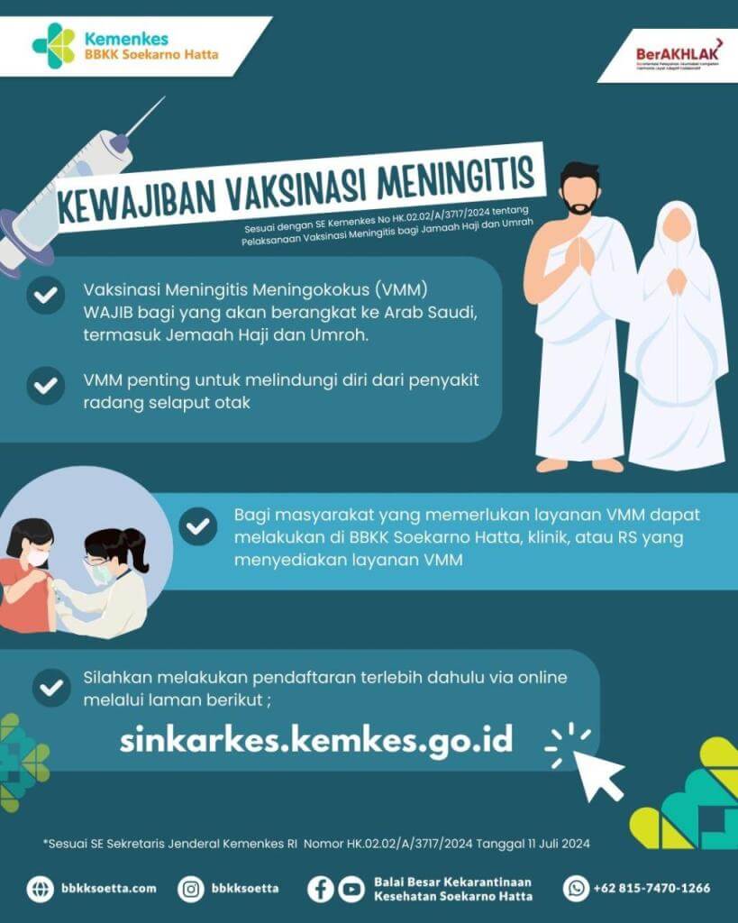"Vaksinasi Meningitis Meningokokus merupakan kewajiban bagi mereka yang datang ke Arab Saudi dengan menggunakan visa haji dan umrah," demikian bunyi surat tertanggal 11 Juli 2024 tersebut.
