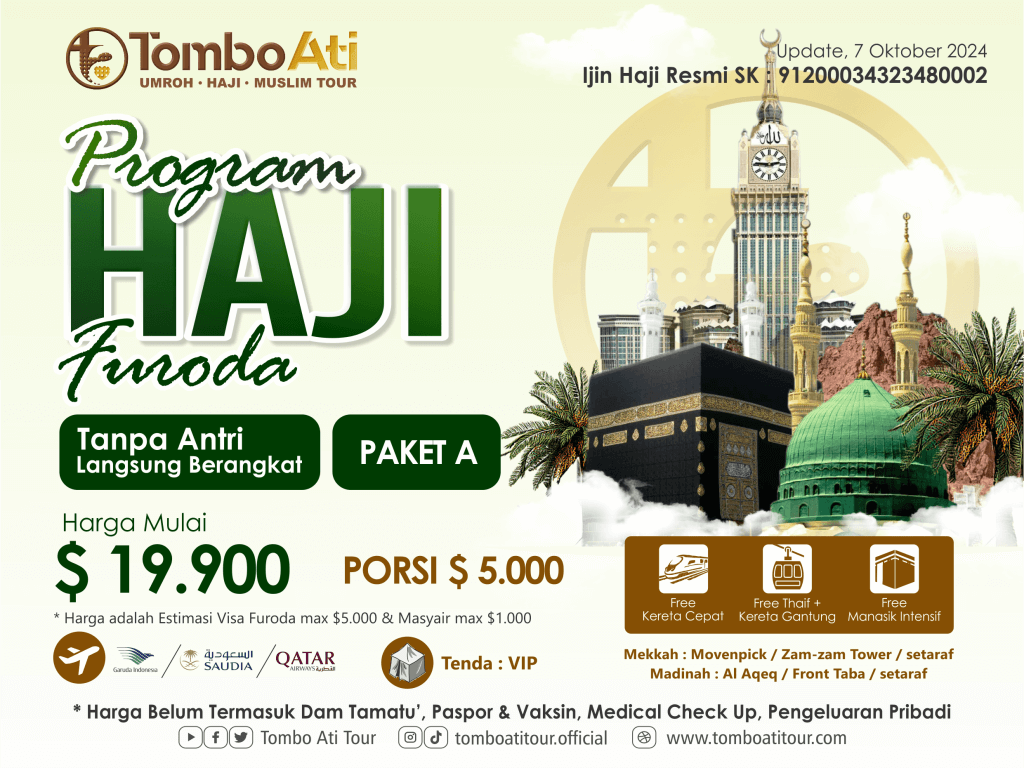 - Apabila selama perjalanan Umrah terjadi hal diluar dugaan maka pihak TomboAti Tour berhak mengambil keputusan sebagai solusi terbaik yang harus dilakukan.